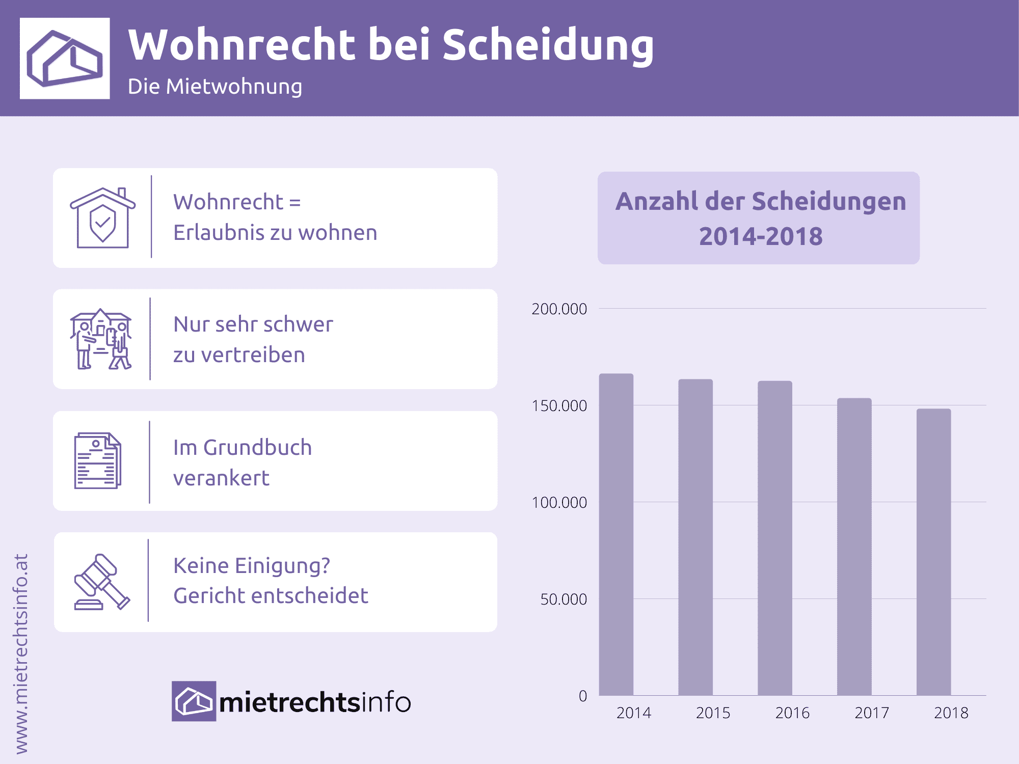 Können sich die beiden Ex-Partner nicht darüber einigen, wer in der Wohnung verbleibt und wer auszieht, bleiben beide bis zum rechtskräftigen Vertragsende in allen Pflichten des Mieters. In diesem Fall muss der Rechtsweg klären, wer in der Wohnung verbleiben darf. Dabei wird von einem Gericht geprüft, bei welchem Partner der dringlichere Wohnbedarf besteht. Zugrunde liegen dabei neben Alter, Berufstätigkeit, finanzielle Lage und Gesundheitszustand auch der Verbleib der gemeinsamen Kinder, wenn vorhanden. Ist die Vermögensaufteilung und damit auch das Wohnrecht bei Scheidung gerichtlich festgelegt, müssen Sie als Vermieter die gerichtlich beschlossene Änderung ohne Einspruchsmöglichkeit umsetzen.