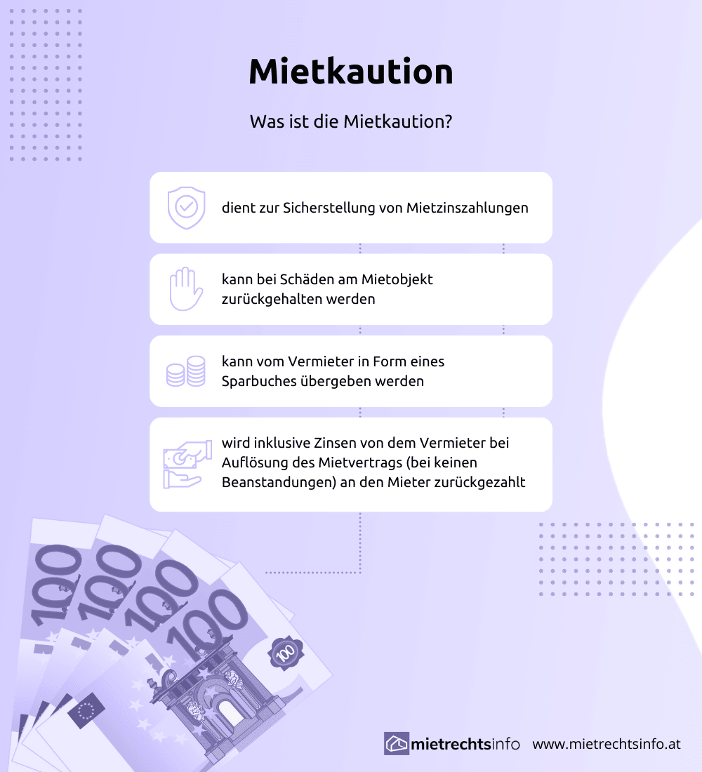 - Die Kaution befindet sich auf einem Sparbuch oder einem anderweitig verpfändeten Konto. Beim zuständigen Bezirksgericht reichen Sie Klage auf Rückzahlung ein.