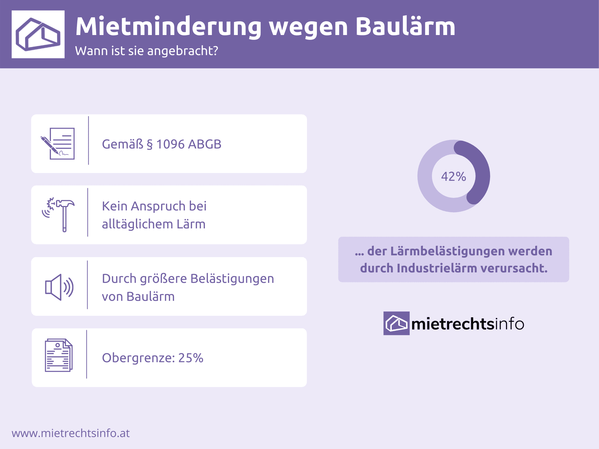 Es ist gesetzlich auch zulässig, bei berechtigten Beeinträchtigungen durch Baulärm einen verminderten Mietzins zu bezahlen. Jedoch geht man dabei das Risiko ein, auf die Bezahlung des vollen Mietzins oder sogar auf eine Räumung wegen Mietrückstand verklagt zu werden, falls sich die Mietminderung als zu hoch erweist. Deshalb ist es zunächst besser, die Miete unter Vorbehalt zu bezahlen und dann nach der Beseitigung des Mangels mit dem Vermieter abzurechnen.