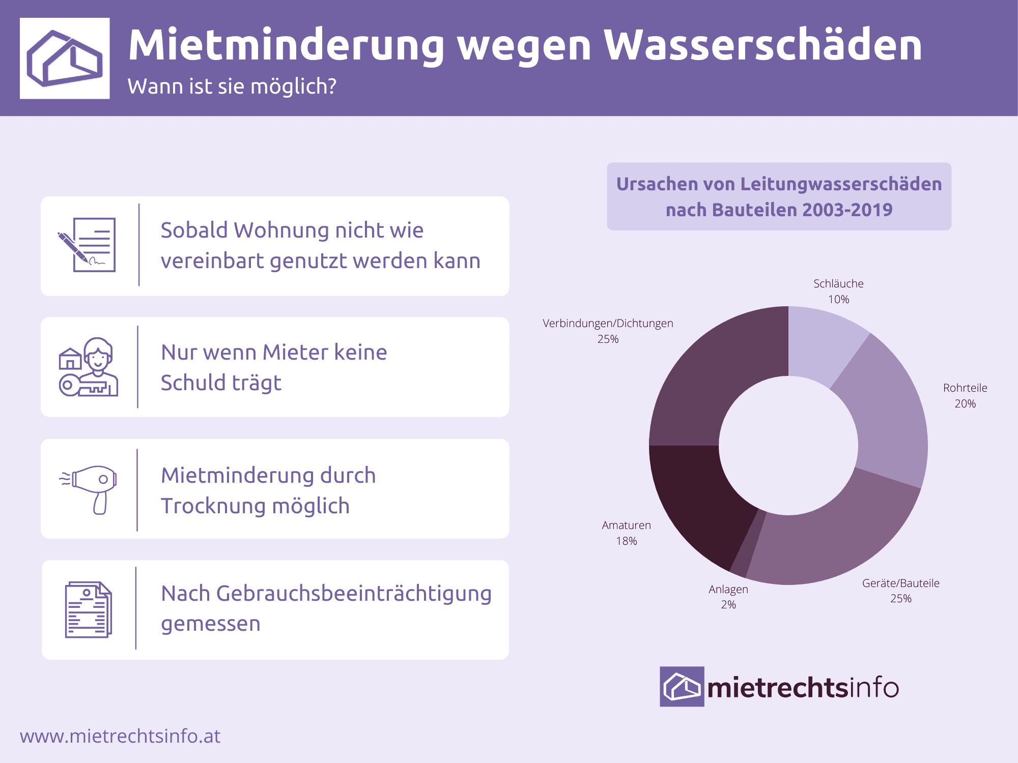 Wird die Wohnqualität nach einem Wasserschaden erheblich beeinträchtigt, ist dies für den Mieter schon einschränkend genug. Für den Fall, dass der Wasserschaden nur durch die Trocknung der Luft mit dem Einsatz eines Trocknungsgeräts beseitigt werden, ist der Mieter dann auch noch zusätzlich beeinträchtigt. Deshalb berechtigen ihn sowohl die Beeinträchtigung durch den Wasserschaden als auch die Trocknung durch den Einsatz eines Trocknungsgerätes zu einer Mietminderung.